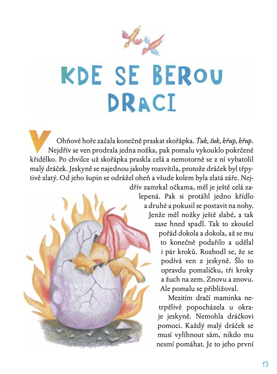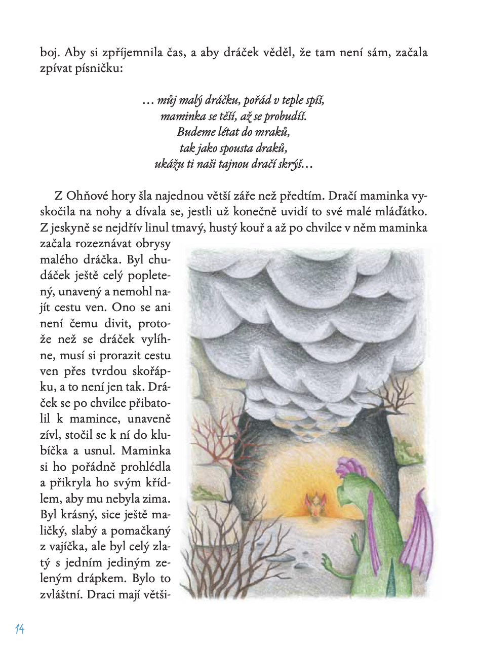 Všichni však mají jedno společné: mají rádi horko a oheň. Jednoho dne snese do Ohňové hory dračí maminka vajíčko a z něj se vyklube dráček Drápek.